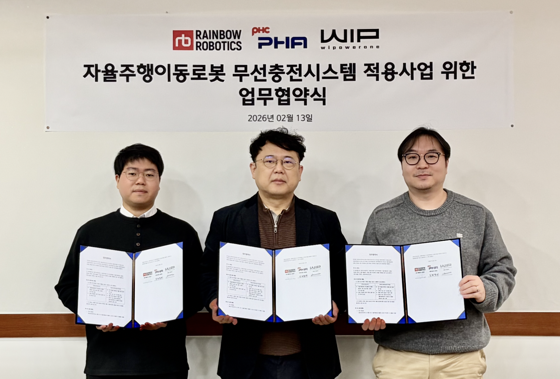 와이파워원은 이번 전시에서 PHA 및 레인보우로보틱스와 협력하여,레인보우로보틱스의 AMR(Autonomous Mobile Robot)에 자사 로봇용 무선충전 시스템을 탑재해 실증을 진행 중이다.